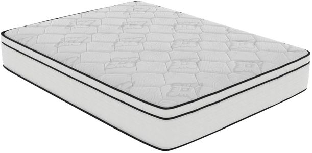 This 10" hybrid mattress features a firm feel with a supportive coil system and comfort foam layers. The Euro top adds extra cushioning without sacrificing firmness. It ships compressed in a box for easy transport and setup, ideal for dependable, long-lasting sleep support.Read More