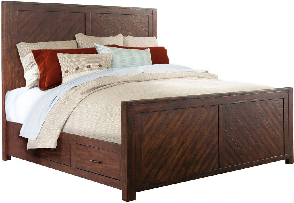 Elevate your bedroom with the Jax Cherry storage panel bed. Showcasing a bold cherry finish and clean modern lines, this bed delivers both style and smart storage. Built-in drawers at the footboard offer extra space for linens or clothes—perfect for maximizing your room without sacrificing elegance and comfort.Read More