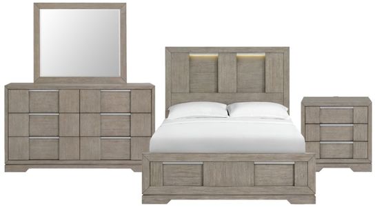 The Elements International Kelis Queen bedroom set with LED combines modern elegance and comfort. Featuring a sleek gray finish, led-lit headboard, and ample storage, this stylish set transforms any bedroom into a sophisticated, relaxing retreat.Read More