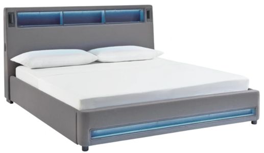 Snooze in style with this California king upholstered bed. It brings delightful function to winding down before bedtime, with an adjustable LED reading light on each side. And for added flair, multicolored ambient lighting brings an ultra-cool vibe to the overall look. Combining modern convenience with captivating design, this bed revamps your restful retreat like never before.Read More